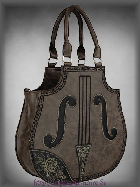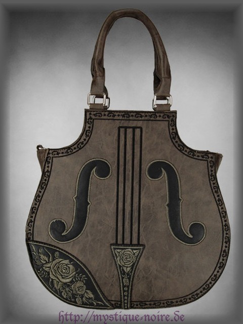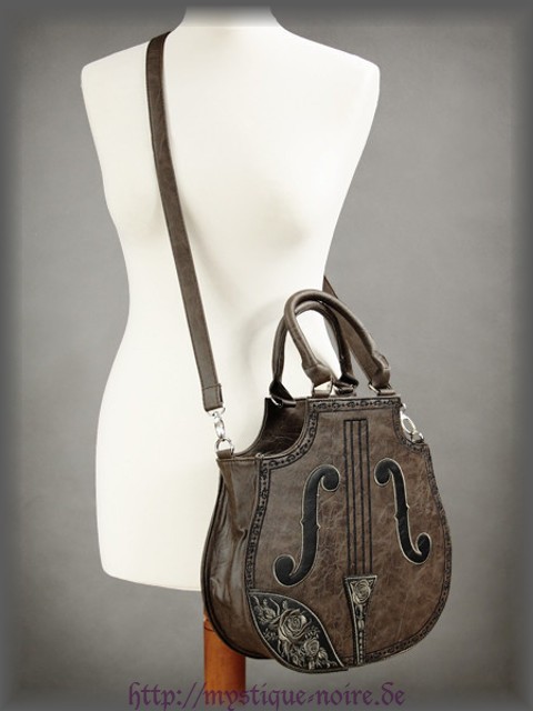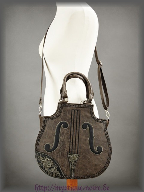 Extraordinary handbag shaped as a violin. This bag is made of artiicial leather and very sturdy so it will keep it's shape. The bag is lined and has three small pockets inside. On the back is a pocket with a zip.