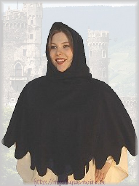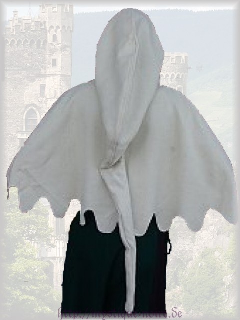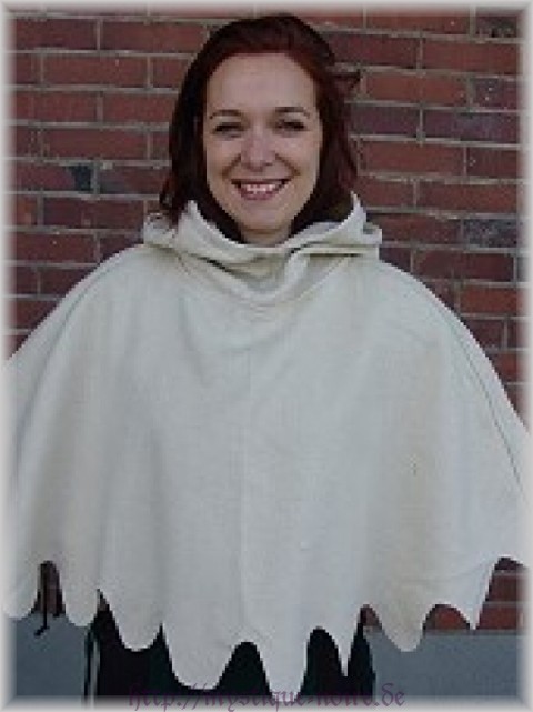 The cowl has a long hood (in German it is called  "Sendelbinde"). Hem with rounded dips (called "Zaddeln") . This cowl with the long pointed hood is perfect for keeping you warm when it's getting colder out there. This cowl will keep you warm and comfy. It comes with a long pointy hood which you can wrap around your neck like a scarf.