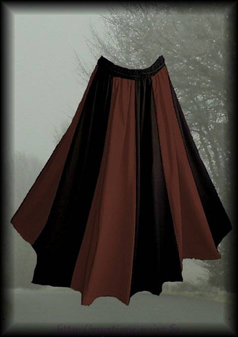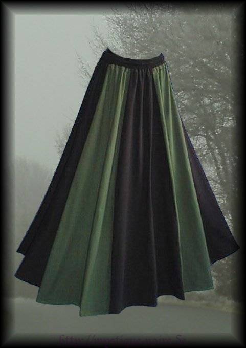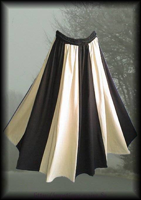 Long, wide skirt with two colors coarsely woven in linen - optics, which punctuates the rustic medieval look. The skirt is a one size fits all. It has an elastic wasitband and a drawstring for regulation of the width.